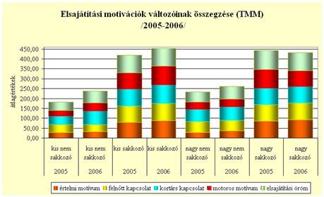 A kisebb korcsoportok (kis sakkozó, kis nem sakkozó) értelemszerűen nem szerepelhetnek ebben az összehasonlításban, hiszen a felmérés első évében még óvodába jártak, tehát nem volt kiindulási alap a tanulmányi eredmény fejlődésének vizsgálatára. A nagyobb korosztályú gyerekek esetében viszont látni kell: míg a nem sakkozók a második tanévet valamivel alacsonyabb szinten végezték, mint az elsőt, a sakkozóknál ezen a területen is előrelépés történt. Itt kívánom megjegyezni, hogy az alsó tagozat 1.-3. osztályában nincs osztályzás, szóbeli értékelést alkalmaznak a pedagógusok. A tanulmányi előmenetel értékelésére egy skálát alakítottunk ki, melynek alkalmazásával mintegy osztályzat-szerű eredményeket kaptunk. Így világosan láthatjuk, hogy milyen szintű a gyerekek tanulmányi előmenetele.